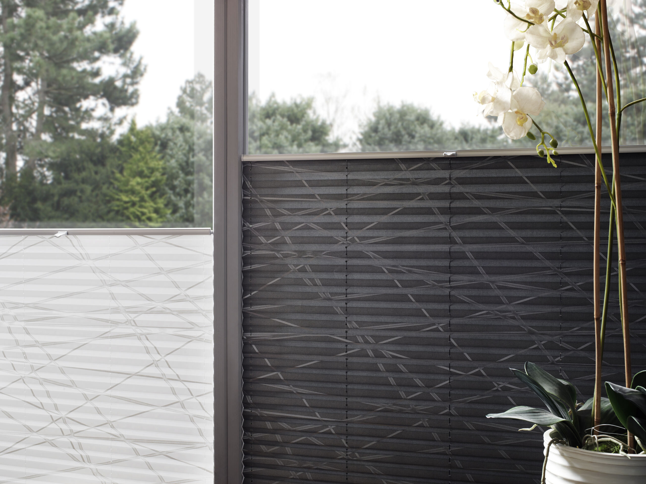 Home – Design & Inspiration – Wohninspirationen – Wohnzimmer mit Plissees in schwarz und weiß Wohnzimmer mit Plissees in schwarz und weiß stöbern Mehr Inspirationen Ähnliche Designs