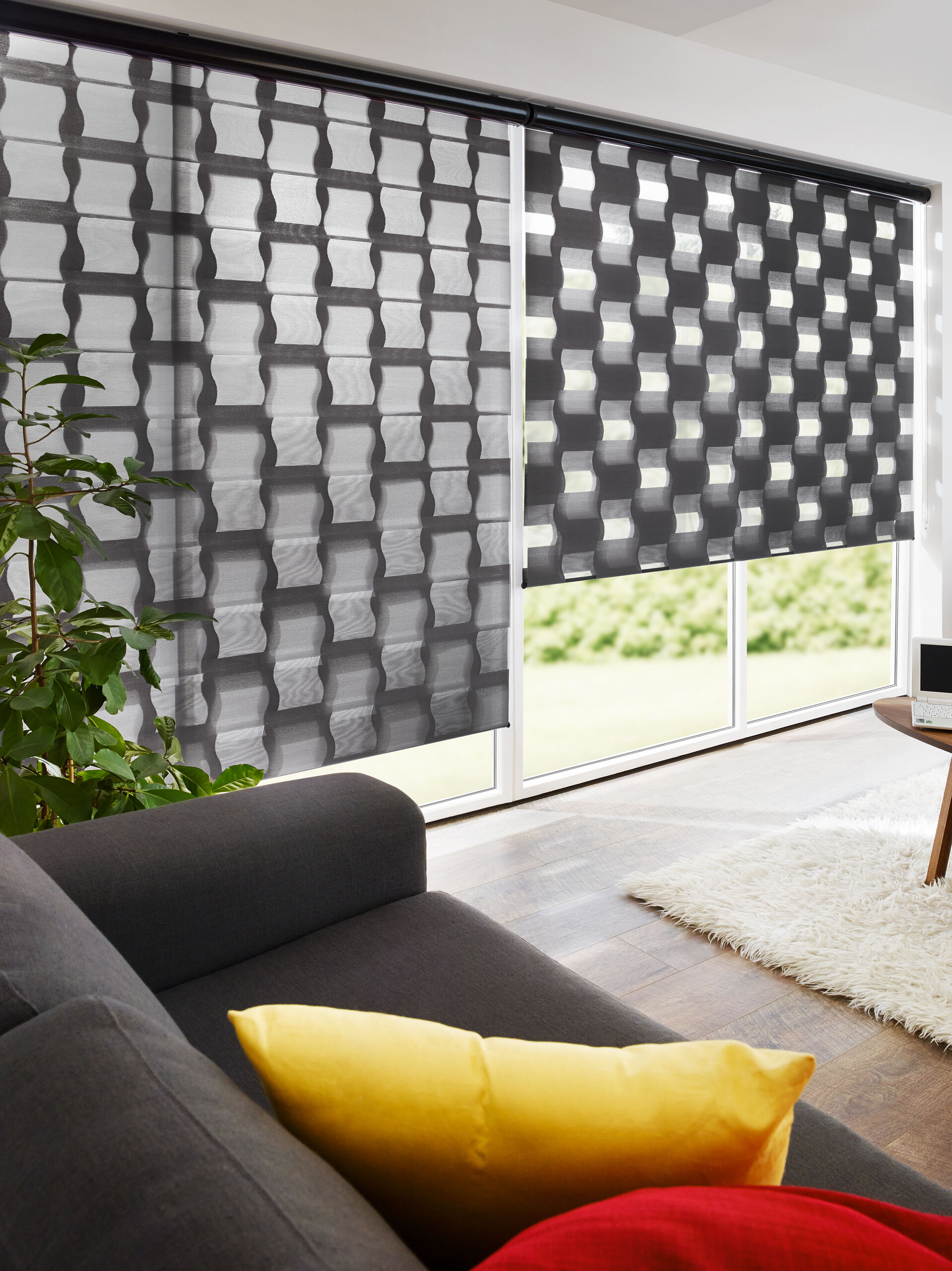 Home – Design & Inspiration – Inspirations for your living room – Living room with double roller blinds in grey with pattern Living room with double roller blinds in grey with pattern Browse More Inspiration Related Designs