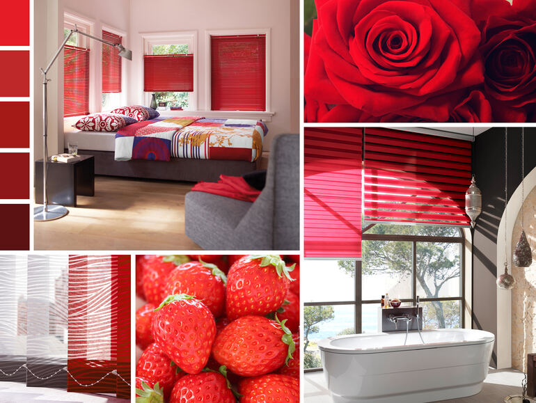 La passion, l'énergie et la chaleur: Ces mots-clés sont associés à la couleur rouge. Elle est la couleur la plus dynamique et est utilisée surtout bien dosée dans le salon. Un mur rouge simple est stimulant et un accroche-regard. Mais attention à l'utilisation vastes: Le rouge produit de la proximité, donc une petite pièce avec des murs rouges apparaît encore plus petite. Vous jouez la sécurité avec des accessoires rouges. Ainsi une chambre devient vivante. Il ne fait pas toujours un rouge vif voyant: des tons bordeaux estompés expriment le confort et donnent une atmosphère détendue à vos chambres.