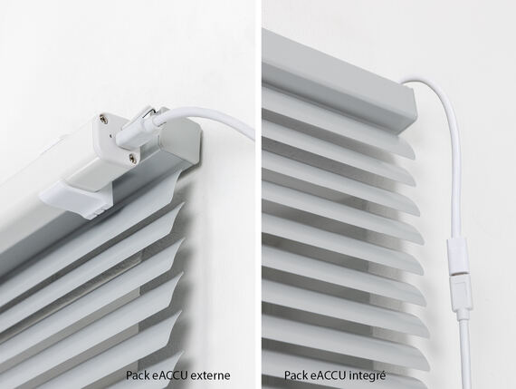 eACCU combine la protection solaire classique avec une technologie d'entraînement performante. Les nouveaux moteurs eACCU sont compatibles avec le standard Smart Home Matter et peuvent ainsi être intégrés direct dans Apple Home, Google Home ou Amazon Alexa, sans nécessiter de centrale de commande supplémentaire. L'entraînement silencieux garantit une acoustique agréable, tandis que la batterie lithium-ion intégrée offre des durées de fonctionnement longues et permet un montage sans fil. La commande s'effectue via une télécommande, un capteur de lumière ou une application pour smartphone, qui permet de régler différents scénarios et minuteries. Les stores enrouleurs, stores doubles, stores bateaux, stores plissés, stores plissés alvéolaires et stores vénitiens peuvent ainsi être facilement adaptés aux routines quotidiennes.
