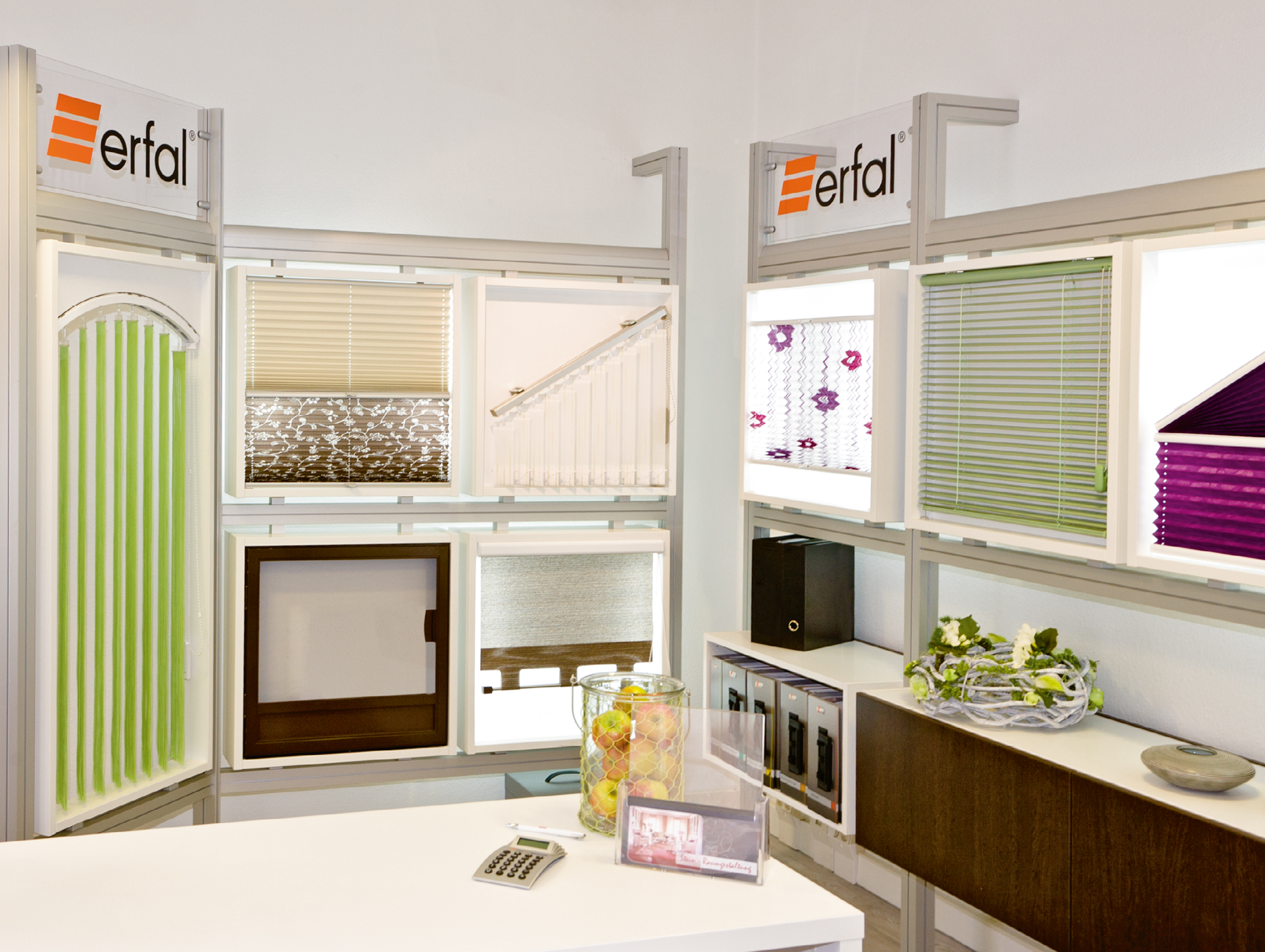 Sowohl kreative Ideen für die professionelle Präsentation von Sicht- und Sonnenschutzprodukten, Insektenschutzgittern und Vorhangdekorationen als auch bei Bedarf Einrichtungselemente wie Schränke, Regale, Tresen oder Tische werden gefertigt.