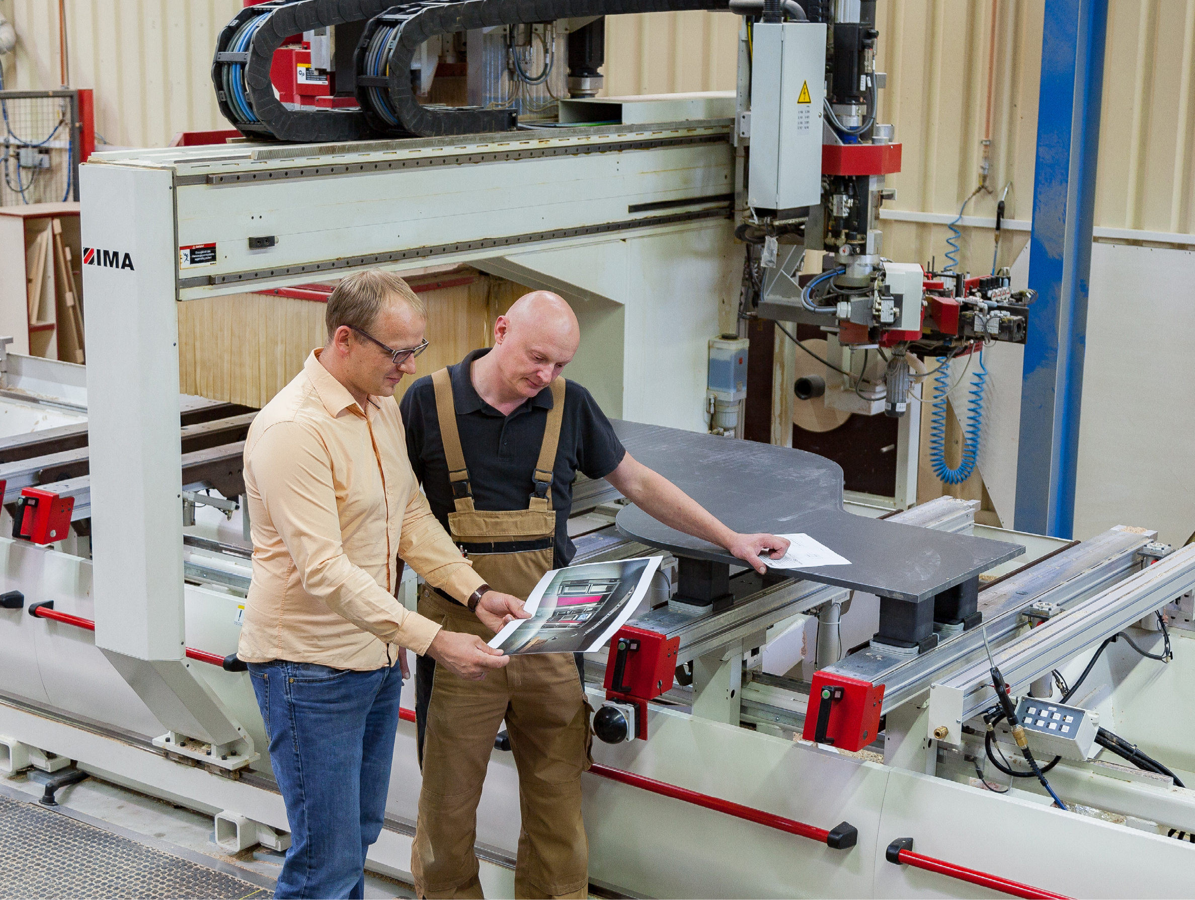 Beratung und Aufmaß vor Ort, eine computergestützte Konzeption bis ins Detail sowie enge Absprachen während der Planungsphase sind die Grundlagen für eine maßgenaue Fertigung in der firmeneigenen Tischlerei.