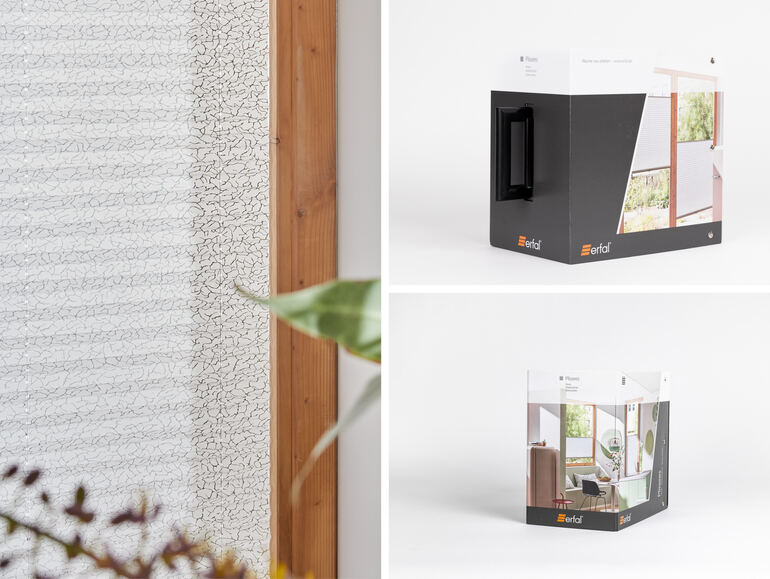 14 Kollektionskarten mit allen Stoffmustern und zahlreichen Bildern bieten einen Überblick über die Kollektion und laden zusammen mit dem digitalen Lookbook ein zum Stöbern und Inspirieren lassen. Der neu designte Plissee-Katalog enthält zudem die exklusive Priplak-Karte, mit welcher man die Kombinationsmöglichkeiten der Stoffe mit den verfügbaren Schienenfarben spielend leicht testen kann.