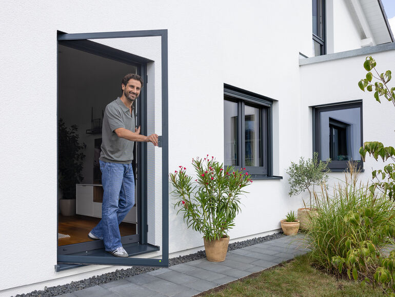Sie lieben den ungestörten Blick in Ihren Garten oder die freie Natur? Oftmals trüben herkömmliche Insektenschutzgitter mit Sprossen die klare Sicht nach draußen. erfal bietet Ihnen die perfekte Lösung: sprossenfreie Insektenschutzsysteme, die Ihnen eine uneingeschränkte Aussicht ermöglichen, ohne dabei auf hochwertigen Schutz vor Insekten verzichten zu müssen. Entdecken Sie die Vielfalt unserer sprossenlosen Varianten!